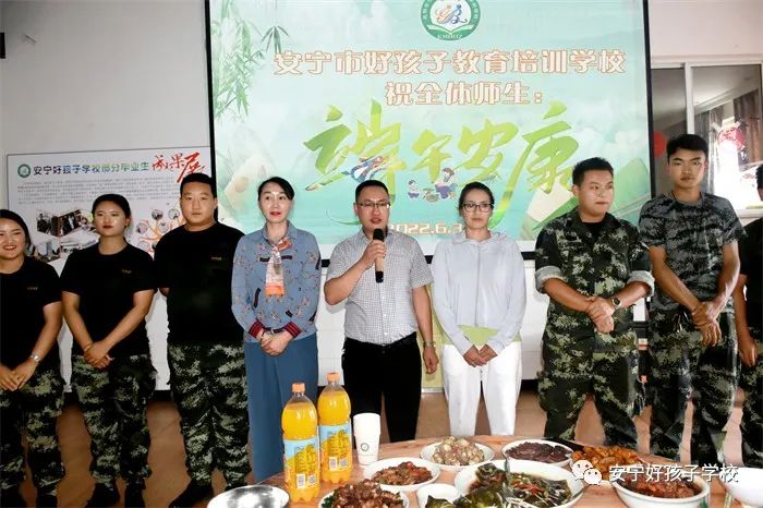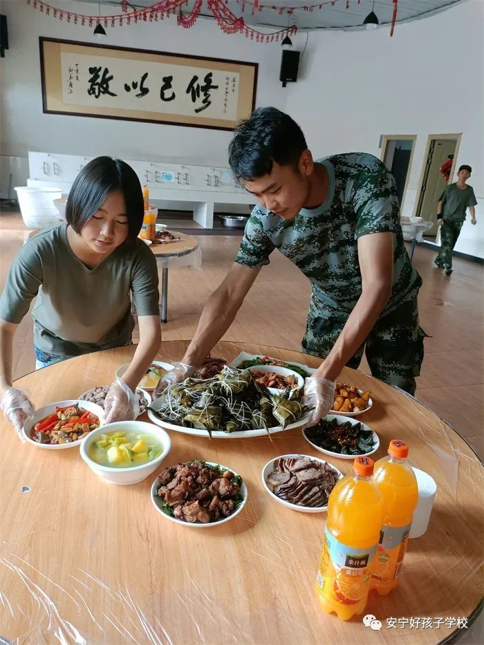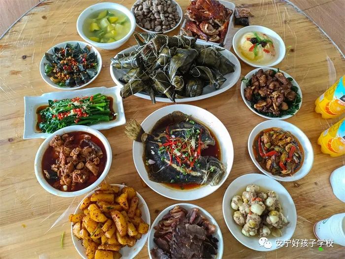 傍晚,一個個香氣撲鼻的“粽子”新鮮出爐端上了桌,一桌桌色香味俱全的盛宴便呈現(xiàn)在大家眼前。開飯前,尹校長向全校師生表示節(jié)日的問候與祝福,并語重心長地說道:“孩子們,今年的端午節(jié)對于大家來說,一定意義非凡,希望你們在這個轉(zhuǎn)折點,好好學(xué)習(xí),感恩自己的父母,做一個真正的好孩子,做一個對社會有用的人”。聽著尹校長親切又有力量的一番話,孩子們感動不已。隨后,在尹校長“端午節(jié)晚餐現(xiàn)在開席”的一聲令下后,大家共同舉杯正式開始了晚宴。孩子們一邊吃著豐盛的晚餐,一邊迫不及待地解開升騰著熱氣的粽子,心滿意足地品嘗著自己的“作品”,笑容分外甜蜜。席間,尹校長還親切地走到孩子們中間敬茶祝福。看著教學(xué)中嚴厲的校長,生活中卻是如此關(guān)切地噓寒問暖、和藹可親,像父母,又像兄長,同學(xué)們高興不已!鏡頭下,孩子們不時向父母老師道祝福,和同學(xué)相共勉。