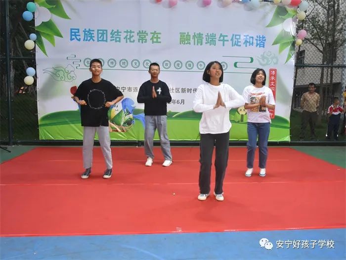 在端午節(jié)前一天,由安寧市連然街道光明社區(qū)新時代文明實踐站舉辦的2022年“民族團結(jié)花常在,融情端午促和諧”主題活動在光明社區(qū)舉行,我校受邀參加,并組織部分學(xué)生到場表演了精彩節(jié)目。孩子們優(yōu)美的舞姿、燦爛的笑容贏得了臺下雷鳴般的掌聲。節(jié)目后,孩子們還爭先恐后進行了端午知識搶答,他們豐富的知識儲備,令現(xiàn)場觀眾贊嘆不已;顒游猜,學(xué)校執(zhí)行校長尹斌更是親切地走到社區(qū)居民身邊,親手為他們遞上粽子,并送上“端午吉祥安康”的美好祝福。