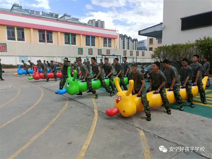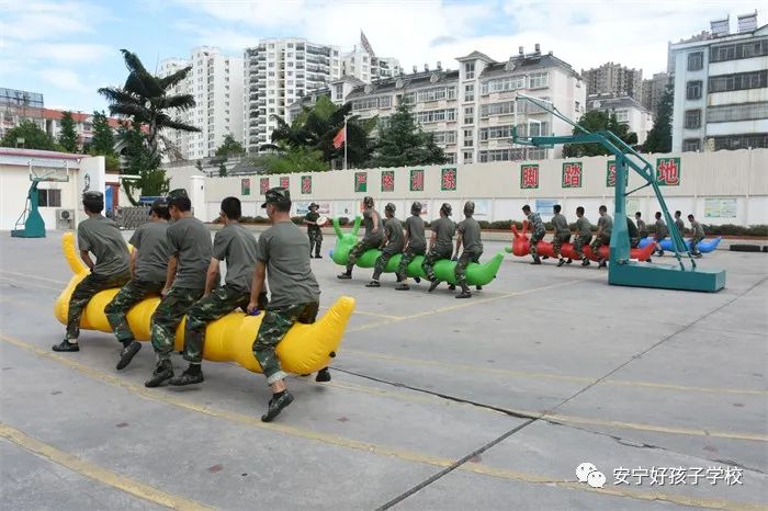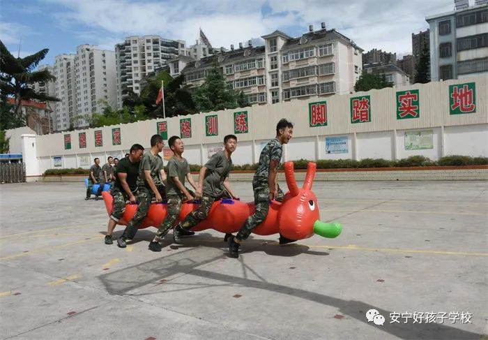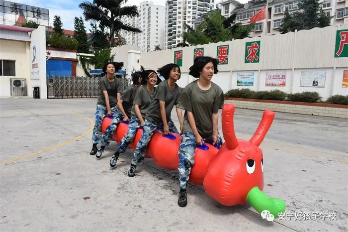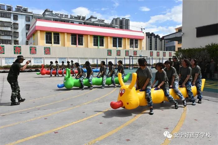 賽龍舟結(jié)束后,同學(xué)們意猶未盡,接著進行了“毛毛蟲競走”。參賽隊伍8人一組,后面的同學(xué)拉著前面同學(xué)的衣服成一列蹲下前行,用時最少抵達終點者勝出。同學(xué)熱情高漲,一邊高唱“團結(jié)就是力量”,一邊奮力前行,同心協(xié)力沖向終點。