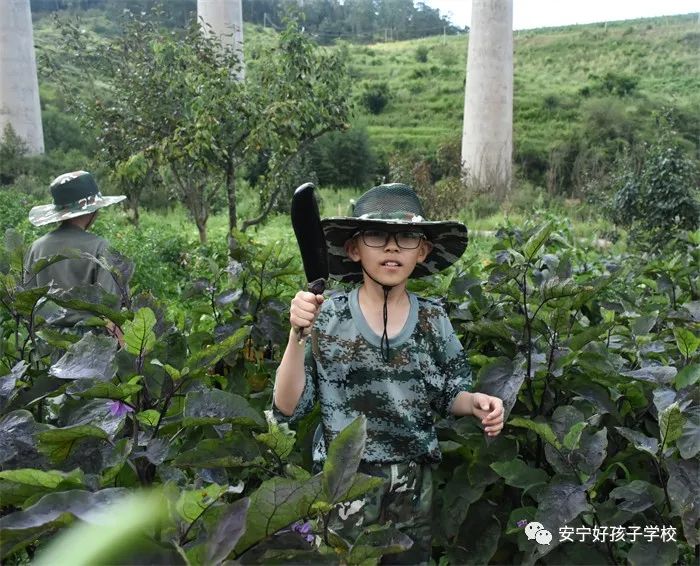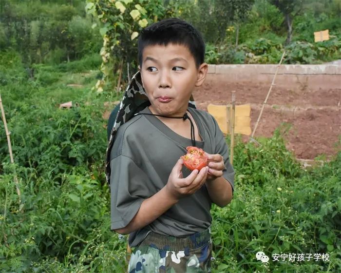 童心正盛的孩子們,有的靜靜聆聽溝渠里青蛙的重奏,還不忘臨摹幾聲;有的看見蝸牛,好奇地放在手里仔細(xì)端詳;有的和老師一起,為瓜藤找一個延伸之地;有的拿著果實(shí)東瞧瞧西看看,趁老師不注意偷偷咬上一口嘗鮮,一副“小饞貓”的樣子。一旁的老師連連說道,生蔬菜不能吃,小心吃壞肚子,但孩子們卻猶如勝利的將軍。采摘結(jié)束,孩子們在老師的帶領(lǐng)下,使出渾身解數(shù),齊心協(xié)力、干凈利落地對和蔬菜搶營養(yǎng)的雜草“斬草除根”,讓菜園更加生機(jī)勃勃。