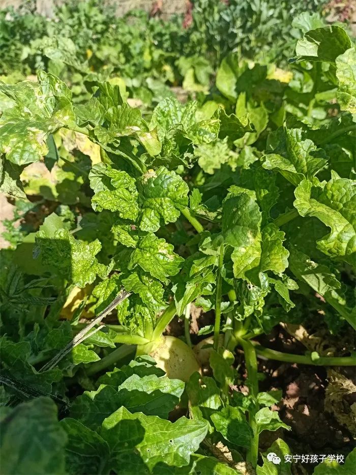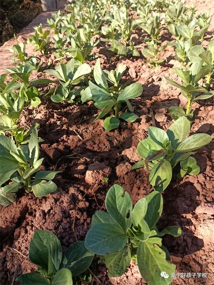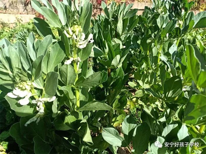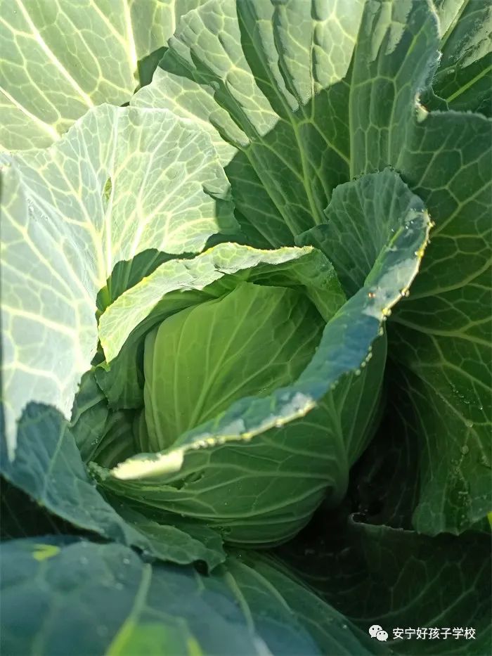 孩子們干活累了,就饒有興致地去觀察之前的同學(xué)所取得的階段性成果;蚴强纯凑_花的蠶豆,或是瞧瞧倔強生長的豌豆和蘿卜,或是聞聞綠油油的青菜,或是摸摸即將可以享用的包菜或苤藍...... 實物可比圖片生動有趣多了,它們的生長形態(tài)如此不同,成長周期也不一樣,卻又都生長在同一片土地上,大自然的無限魅力,讓孩子們的眼睛更加敏銳,思維也活躍起來。