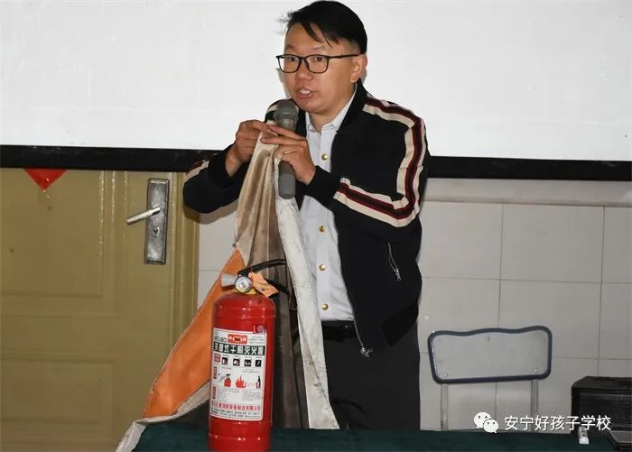 為了讓理論與實踐相結(jié)合,安全知識講座結(jié)束后,學校還組織師生進行了消防應急演練活動。在緊張的逃生演練環(huán)節(jié),孩子們在老師的指引下,用濕毛巾捂住口鼻,彎腰曲背小步快走,迅速有序地按照緊急預案的疏散路線離開宿舍、教室,成功撤出,安全到達指定位置,全程僅用時一分鐘。隨后進行火災撲救演練活動。演練前,唐老師再次詳細講解了滅火器、滅火毯的正確使用方法,并示范動作要領,全體師生認真學習,并親身體驗。